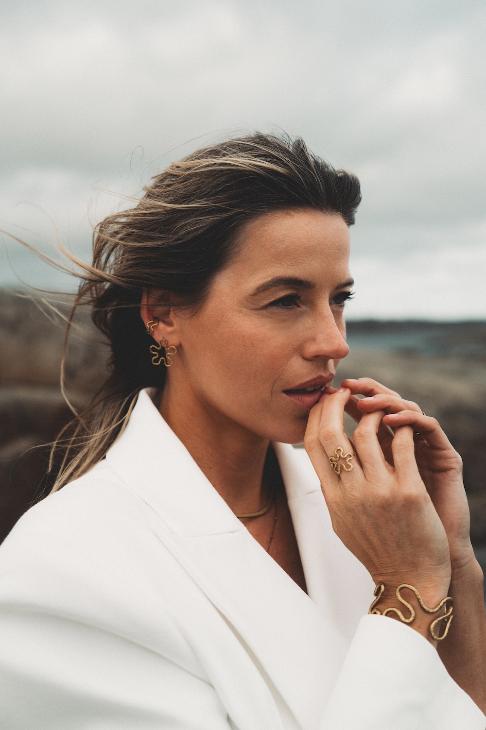 Fint med øredobber og ring i samme stil!