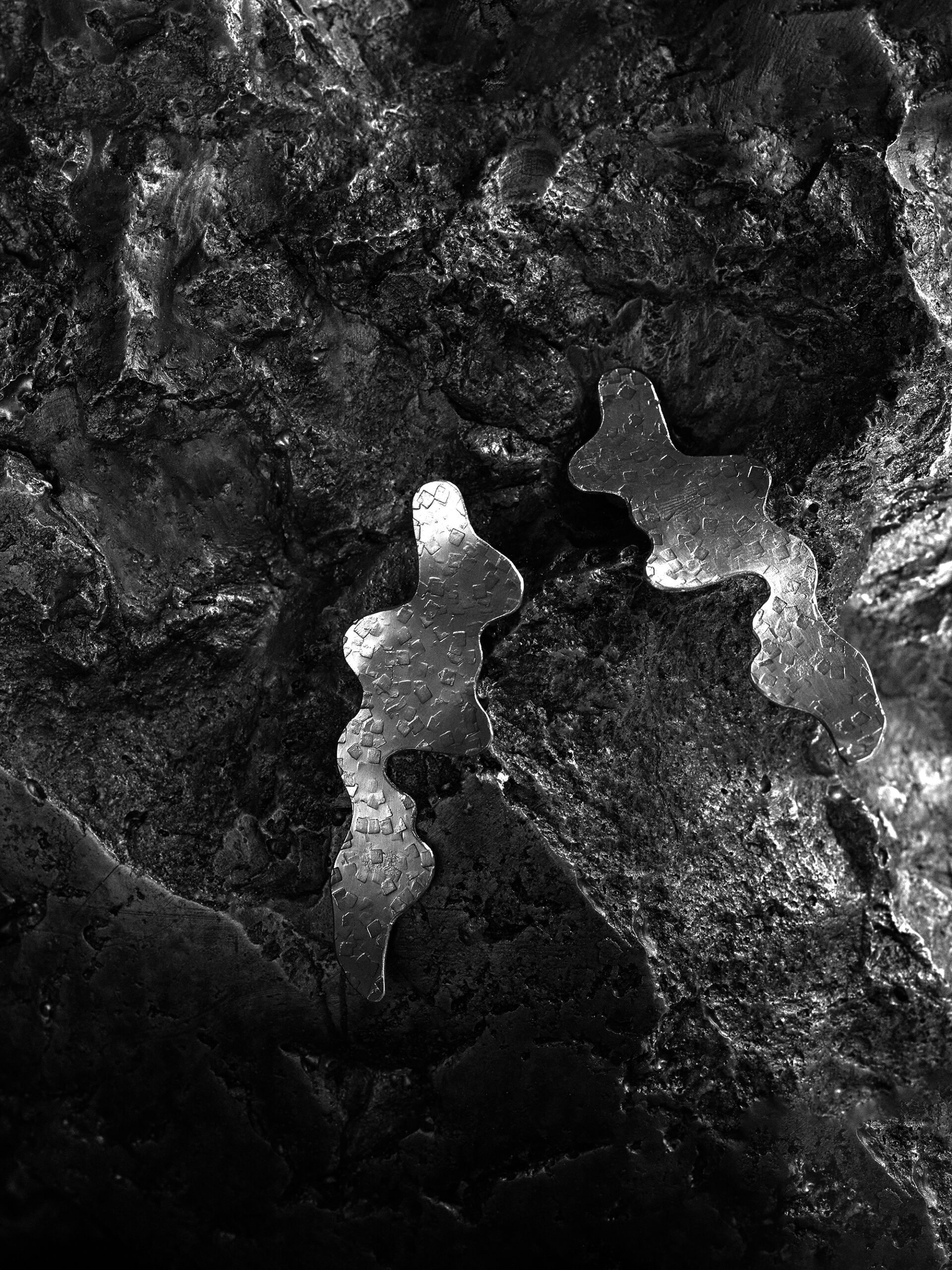 Ręcznie wykonane kolczyki ze srebra pr. 925. Autorski kształt oraz niepowtarzalne tłoczenie to zdecydowanie ich atut.
