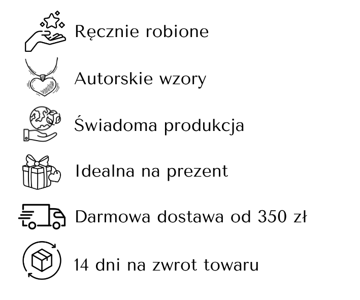 Każdy model biżuterii jest wykonany ręcznie, dlatego poszczególne egzemplarze mogą nieznacznie różnić się od modeli przedstawionych na zdjęciu.